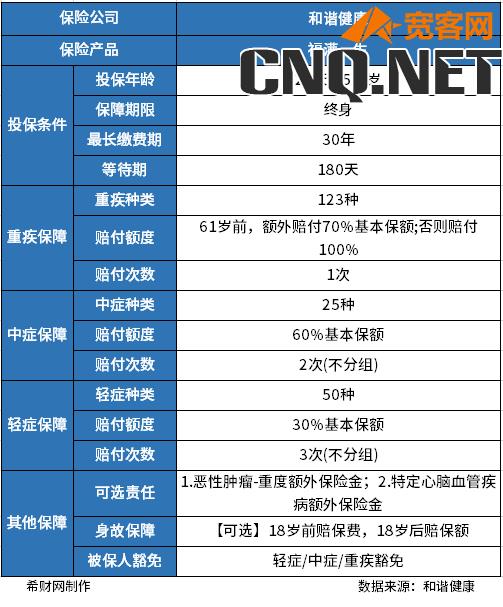 1、投保年龄广:福满一生的最高投保年龄为65周岁。而一般重疾险的最高投保年龄为50岁或55岁,如果想要为65岁以内的父母配置重疾险,这款产品值得重点考虑。
