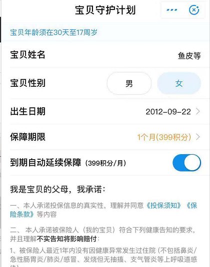 支付宝宝贝守护计划,只要399积分/月就可以保障12种少儿疾病,其中就包括白血病,这样的好保险在支付宝哪里能找到呢?小编带你去看看