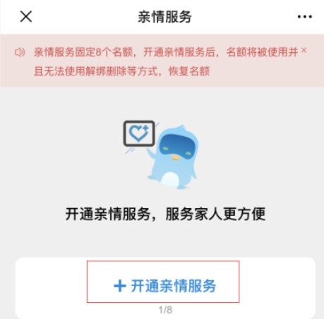 【3】页面跳转之后,选择“开通亲情服务”;