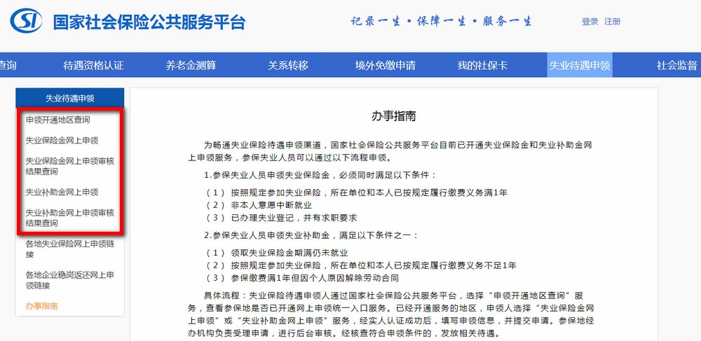 以国家社会保险公共服务平台的领取流程为例: