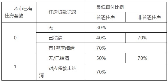 【1】没有住房贷款记录,无论是普通住房还是非普通住房,最低首付比例都是30%。