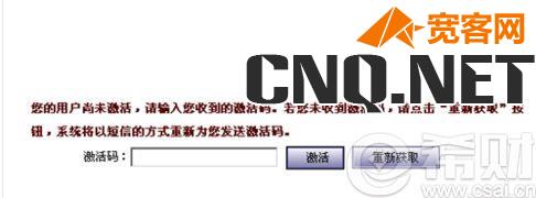 9.第二天手机收到激活码后,登陆账号,系统会提示你激活用户,找到手机上的激活码,激活账户。如图所示: