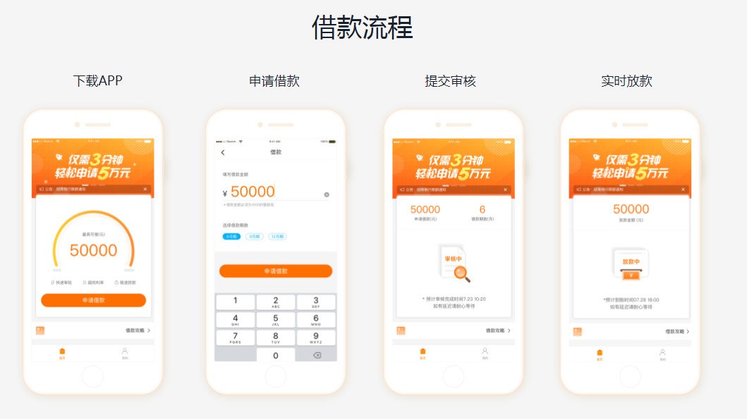 申请条件:22-55周岁,只需填写手机号、姓名、身份证、银行卡信息,就会采用大数据授信模式,快速审核、下款。