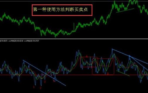 这种方法可以简单判买卖点以及过滤杂音!当然若rsi与均线一期发散,且在50以上,则是强势,所以可以在RSI指标回落至短周期均线旁作为买入;反之若rsi值在50以下下,则是弱势,rsi回落至短期均线旁则为买点,如果rsi与均线受趋势线压制,突破时与均线一共突破,则为买卖点。