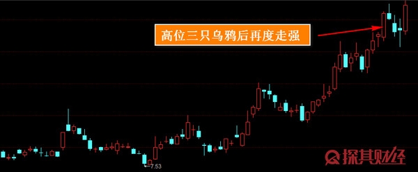 在这样的条件下,三只乌鸦的洗盘形态往往是难以形成的,因而一旦形成那么就意味着该股有望突破前高,后市迎来更大的涨幅。