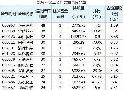 社保基金重仓股票有哪些?