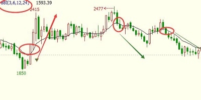 BBI指标是多空指数的意思,是通过将几条不同天数移动平均线用加权平均方法计算出的一条移动平均线的综合指标。多空指数是在移动平均线的基础上发展而来,因此在运用方面我们可以参照葛兰威尔法则,具体如下:
