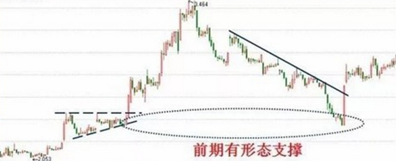 【1】洗盘:开盘之后价格始终呈现单边下跌趋势,在收盘价及均价线以下。但是运行在前期支撑形态或主要的支撑线位置附近,不会出现跌破支撑位的情况。后续支撑线和压力线的作用非常明显,下跌至某个价位后,开始止跌,在某个区域呈现箱体震荡格局。