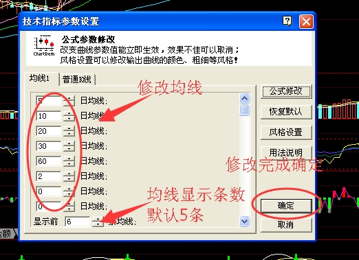在图中,我们可以自行设置均线的颜色和时间,如果是电脑操作,我们可以直接打开同花顺软件,然后打开个股K线图,然后双击日线栏。然后我们就可以设置120的日均线作为半年线。