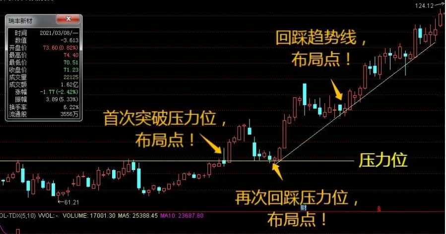 【3】股票突破压力位后当天的收盘价格高于压力位的3-5个百分点。