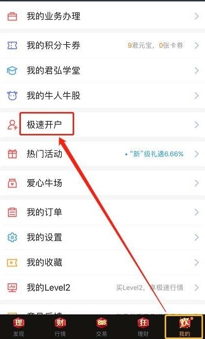 【1】下载意向的证券公司APP,注册登录选择开户(以国泰君安君弘App为例);