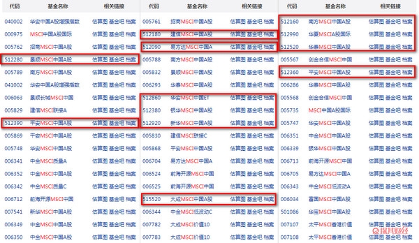 msci指数etf基金有哪些?