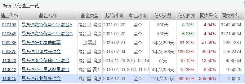 冯波管理的基金有哪些 冯波管理的基金盘点