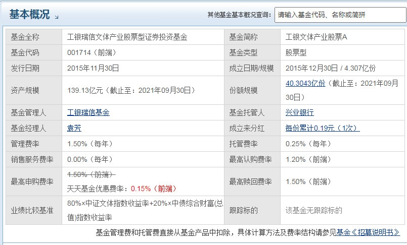 工银文体产业股票成立于2015年12月30日,基金代码为001714.是股票型基金,目前资产规模为139.13亿元(截止至:2021年09月30日)。