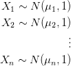 假设我们有 n 个独立的正态分布样本(每个 X 都是含有许多样本点的 sample)