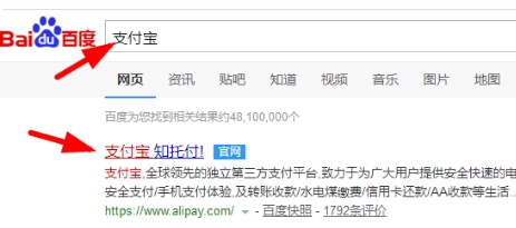 1、打开电脑,在浏览器中搜索支付宝官网,点击进入,如图所示。