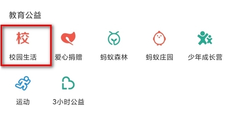 【2】点击教育公益中的“校园生活”,进入校园生活页面;