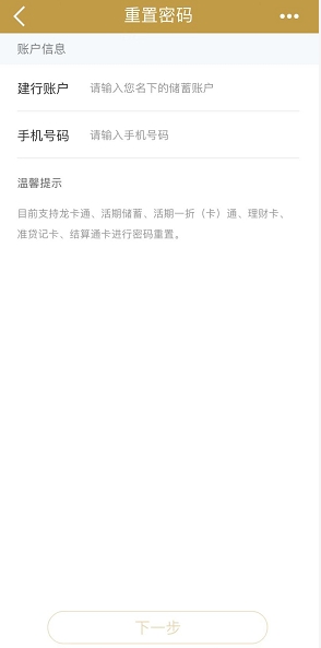 【3】按照页面指示,输入相关信息,包括开通手机银行时所使用的手机号码、银行卡号、身份证号及支付密码,进入下一步;