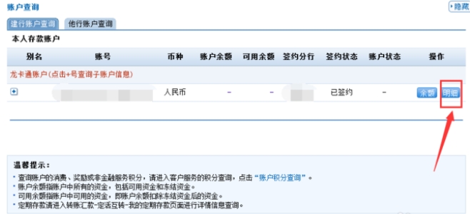 建设银行网上银行怎么查明细?