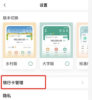 ②页面跳转之后点击“银行卡管理”;