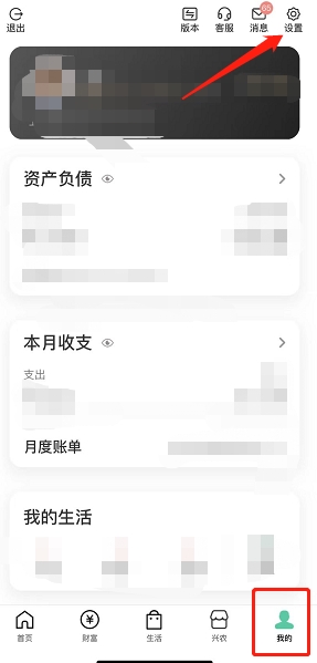 ①登录农业银行手机银行APP,进入“我的”,然后点击右上角的“设置”;