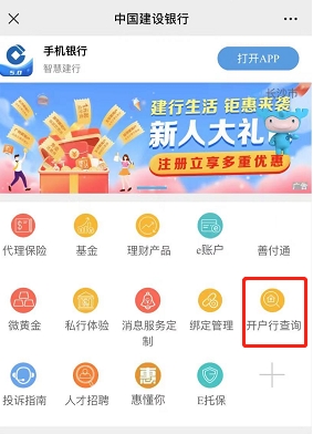 【3】银行官方公众号查询:现在不少银行官方微信公众号都是可以直接查询到开户行信息的。以建设银行为例,具体的流程如下: