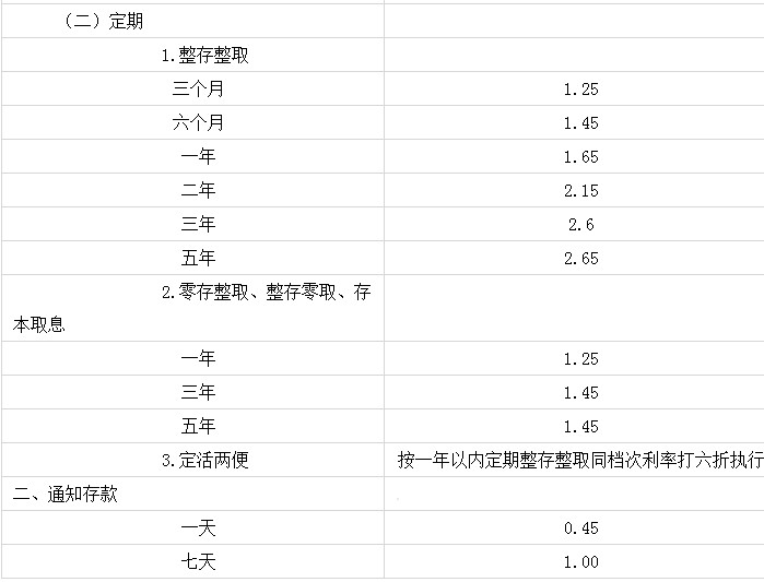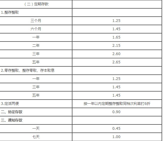 四大行的定期利率哪个高 四大行最新定期利率