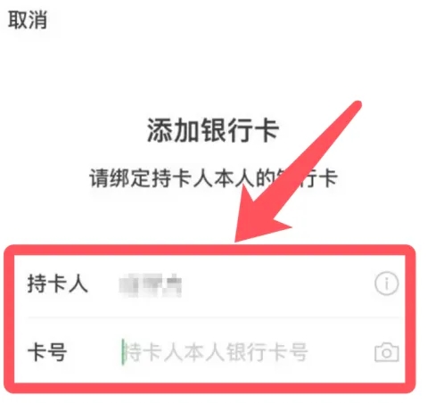 【5】最后输入持卡人姓名及卡号即可绑定。