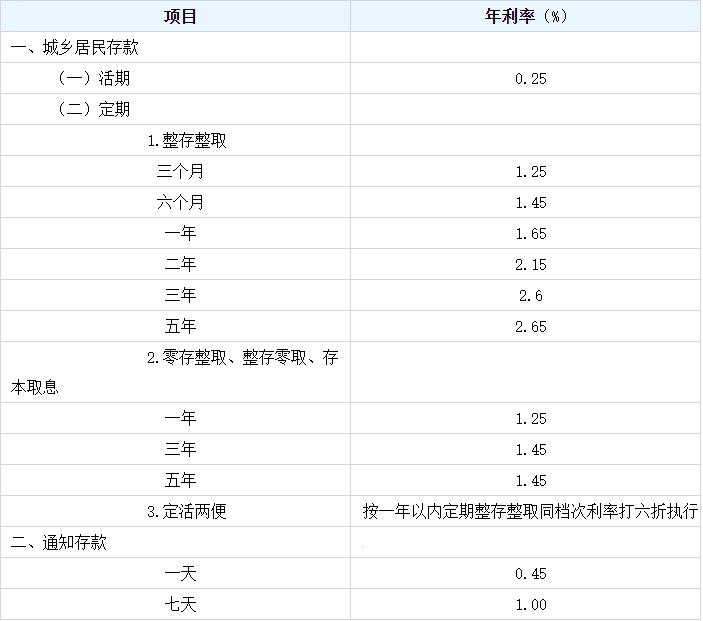 举个例子,一储户将一万元存入建设银行,若选择整存整取,则一年的存款利率为10000*1.65%=165元。若选择零存整取、整存零取以及存本取息,则一年的存款利率为10000*1.25%=125元。