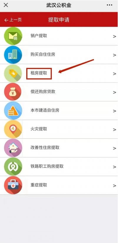 4、以租房提取为例,在提取申请栏目里点击“租房提取”,如申请其他提取项目选择相应栏目即可;