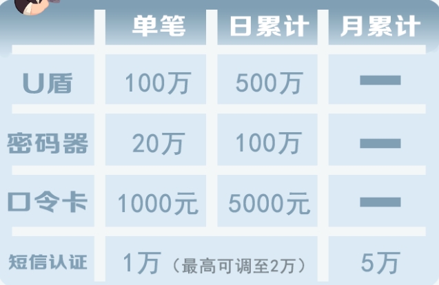另外,需注意的是,认证介质不同,限额也不同: