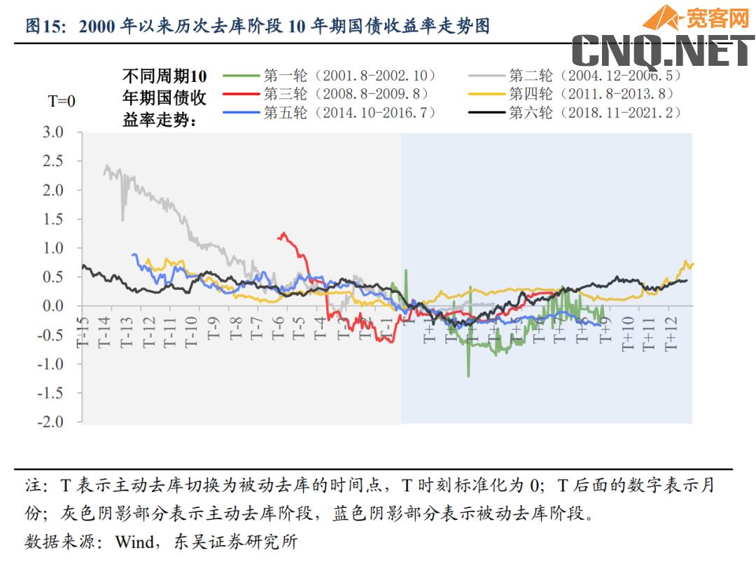 除股市以外,被动去库往往也会导致国债收益率的走强。当库存周期处于主动去库阶段时,债券收益率下跌的态势较为明显。当库存周期完成从主动去库到被动去库的切换后,国债收益率将企稳寻底,但是能否会转而上升——时点和幅度都与彼时的经济、政策环境有关。