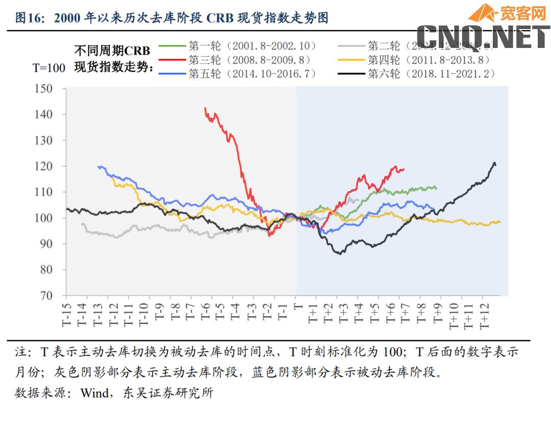 主动到被动去库的过渡也意味着大宗商品价格拐点的到来。在大多主动去库阶段,大宗商品价格均以不同程度呈现出下滑趋势。而随着主动去库阶段的结束,被动去库阶段需求和情绪的回暖,有助于大宗商品价格的企稳回升。不过通常大宗商品价格的拐点会略微滞后于主动去库转为被动去库的切换点。