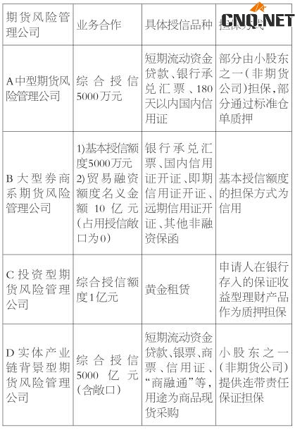 对于授信品种亦可按照期货风险管理公司业务模式的不同进行细分和搭配,例如针对基于低敞口的基差交易业务所带来的融资需求,建议银行可以给予信用方式的贷款。