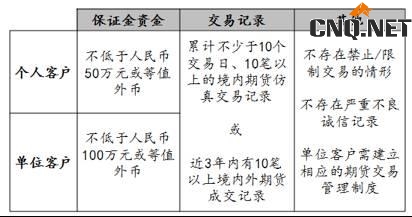 (3)申请交易编码前5个工作日保证金账户可用资金余额均不低于人民币100万元或者等值外币;