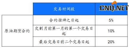 能源中心根据期货合约上市运行的不同阶段制定不同的交易保证金收取标准,也可以根据市场风险情况调整交易保证金的水平。