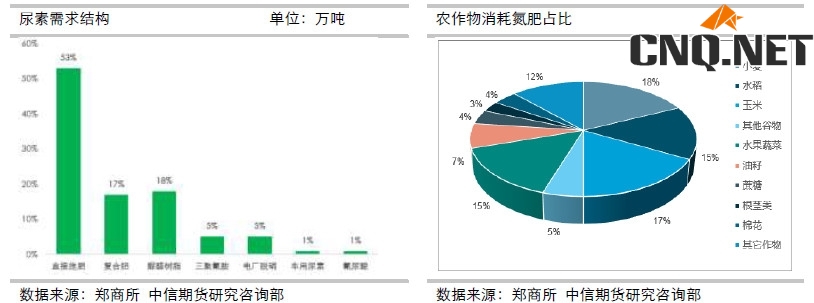 从上图可知,农业的需求占据了70%,而这里面涉及到的农作物主要是粮食作物,以及部分经济作物,而工业需求里面最主要是脲醛树脂,其次是三聚氰胺和电厂脱硝的需求。