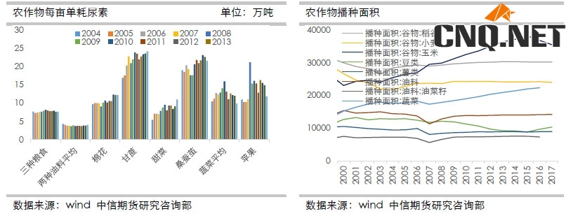 首先说一下农业需求,农业需求里卖弄,虽然单耗最大的是甘蔗和水果蔬菜,但体量最大的仍是粮食作物,因此各类作物的播种面积就直接影响到了尿素的需求,具体如下图所示: