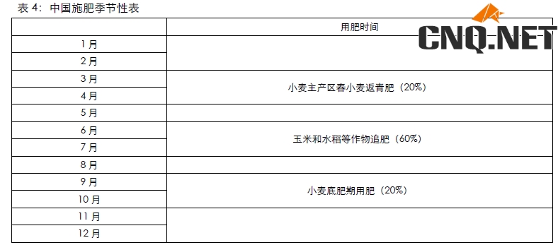 另外就是尿素施肥的季节性,中国尿素主要工农业季节性需求对比显示,1-4月为传统的春耕季节,需求量占全国总消费量的32.20%; 5-7月为传统的用肥旺季,需求总量约占全国总消费量的43.42%;8-12月需求减少24.37%左右,尿素消费最大的省份分别是山东、河南、江苏、内蒙和湖北、四川等地。不过随着期货上市,可能会促使尿素的季节性被弱化,具体如下表所示:
