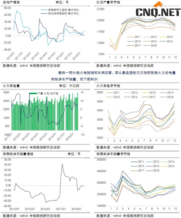 以上就是农业需求分析的大概,还有一部分是工业需求,其中最大的是脲醛树脂,他的用途主要是人造板,跟房地产直接相关,关注量的趋势性变化以及年内的季节性周期变化,如下图所示: