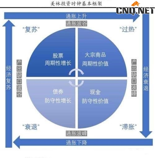 简单来说美林时钟就是一个投资圆盘,告诉你在特定的经济形势下买什么才能赚钱,是买股票、商品期货、投资债券?还是什么都不买?
