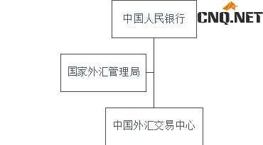 中国人民银行是国务院组成部门,国家外汇管理局是国务院部委管理的国家局。外管局由央行管理,局长由央行副行长兼任。中国外汇交易中心是中国人民银行总行直属事业单位。三者关系如下图所示: