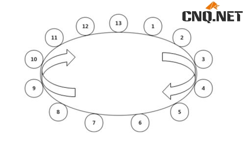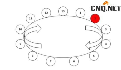 第二步:利用27÷13=2余1,确定起点为余数加1,对应序列中的位置为2,终点对应序列中的位置为1。如图2所示。