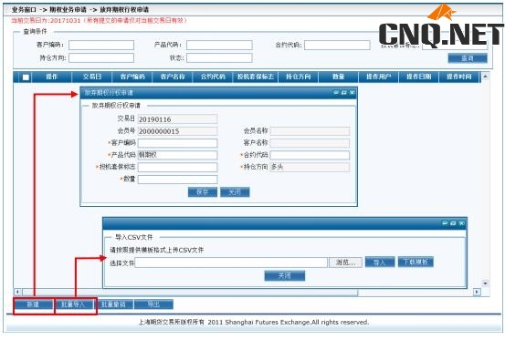 系统对提交的行权申请,不进行资金、期货限仓的前端检查。通过指令提交的行权或放弃申请,检查并冻结相应期权持仓;通过会服提交的行权或放弃申请,不检查也不冻结相应期权持仓。