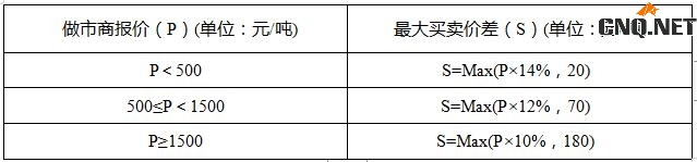 最大买卖价差分段设置表