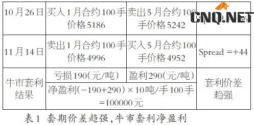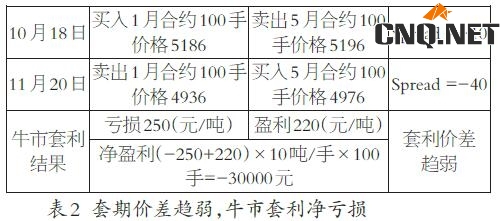 以上仅例证了正向市场上牛市套利在套期价差趋强时盈利,套利价差趋弱时亏损。同理在反向市场上可以推断相同结论。
