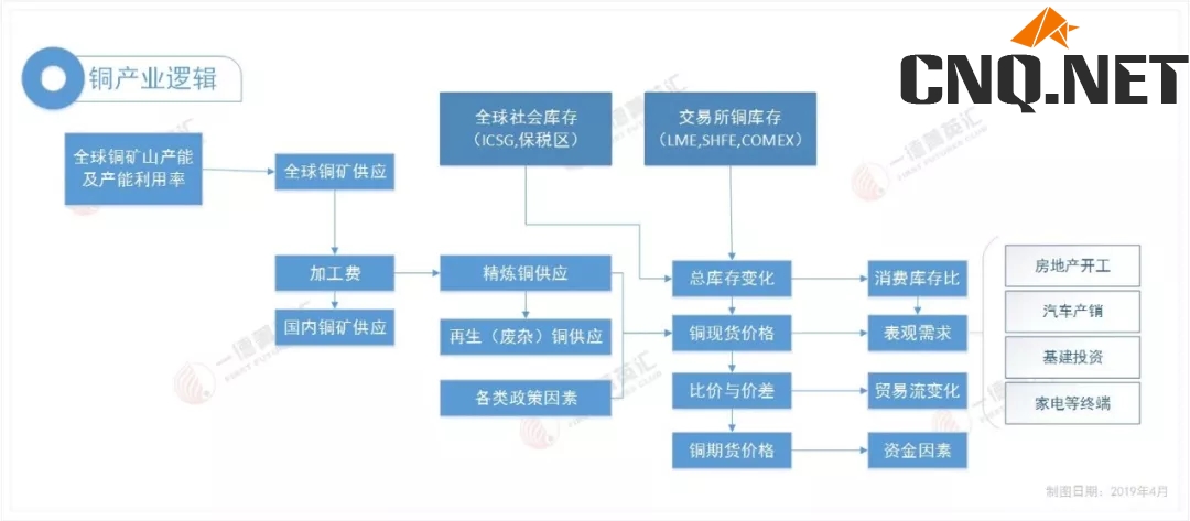 铜产业链分为上、中、下游。上游主要是采选、冶炼,中游是铜材加工,下游是终端消费。铜价主要受产业供需和宏观因素两个方面影响,但从研究分析上来讲产业可看供给,需求看宏观。铜产业的供给弹性小于需求弹性,供给所处周期阶段决定未来绝对价格重心水平,宏观主要通过情绪传导影响中短期走势偏离重心波动。