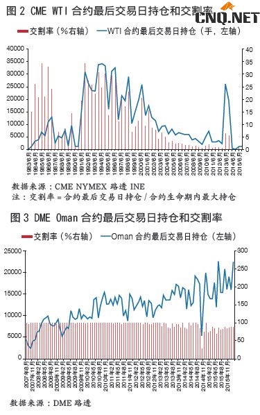因ICE Brent原油期货采用现金交割,所以以CME WTI和DME Oman两个原油期货品种合约最后交易日收盘后的持仓作为交割量进行测算。