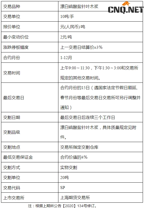 表 上海期货交易所漂白硫酸盐针叶木浆期货合约