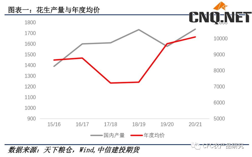 当前花生价格处于历史较高价位,如果产量能够持续提高,长期来看价格有望出现偏弱震荡的局面。